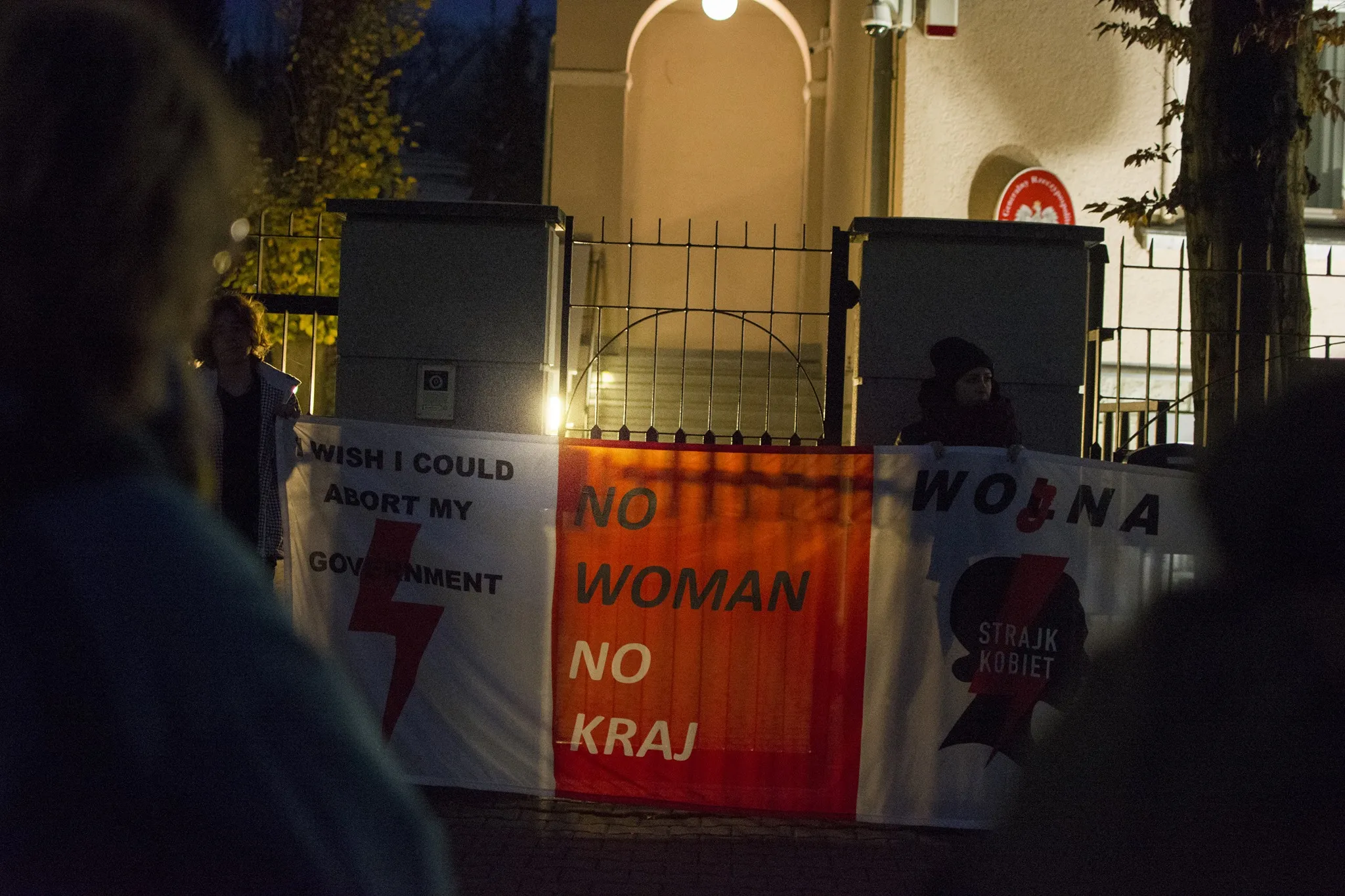 Ve čtvrtek 11. listopadu se před konzulárním oddělením Velvyslanectví Polské republiky v Praze sešlo na 300 demonstrantů a demonstrantek, aby vyjádřili svůj protest proti současné potratové legislativě, kterou prosadila polská vládní strana Právo a Spravedlnost (PiS). Akci svolaly kolektivy International Feminists United - Prague a Ciocia Czesia. Organizátorky v projevech připomněly tragickou smrt mladé matky Isabely, která musela čekat na potrat až do chvíle, kdy jejímu dítěti přestane tlouct srdce. Když se tak stalo, bylo už pozdě a sepse vyčerpala Isabelino tělo natolik, že přestalo bít srdce i jí. Tento barbarský zákon tak má svou první přímou oběť, ale je bezpočet těch, kterým ublížil a ubližuje nadále.