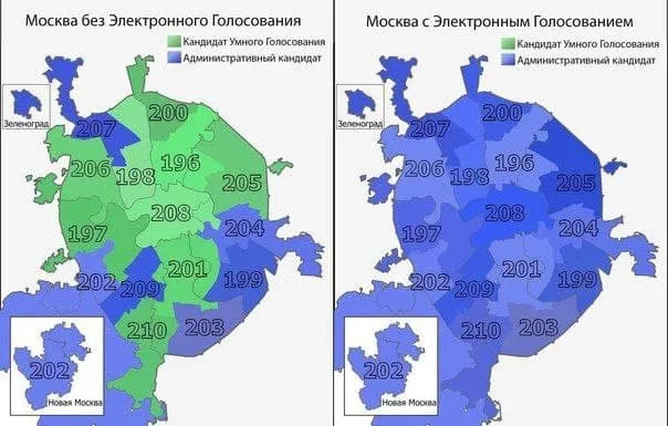 Po zveřejnění výsledků volebního úřadu se ukázaly obrovské rozdíly oproti výsledkům hlasování ve fyzických volebních místnostech v Moskvě, zejména v jednomandátových obvodech.