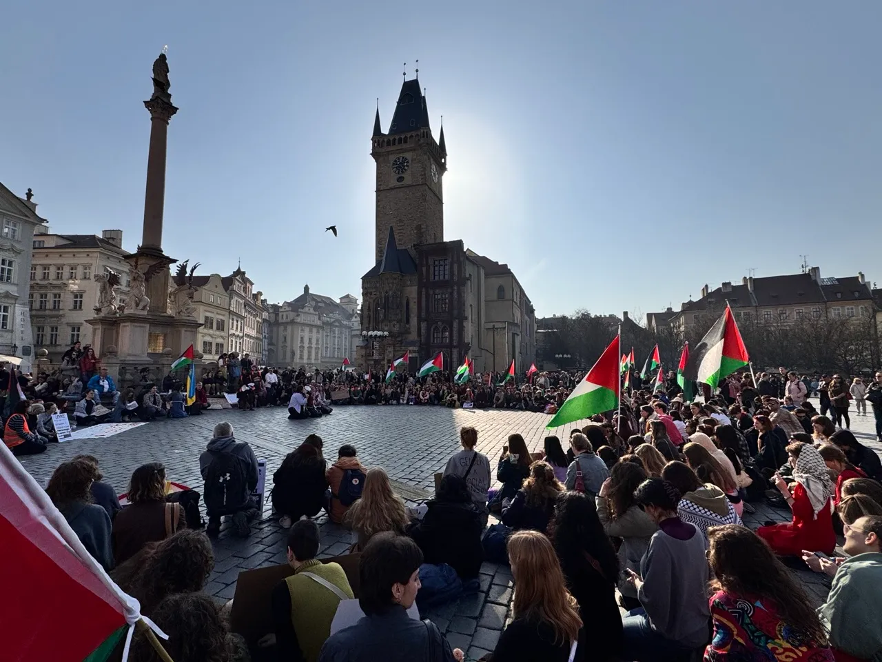 Pochod poté prošel přes Karlův most na Staroměstské náměstí. Jeho účastníci byli velmi různorodí a přehlédnout se nedal ani početný palestinský kontingent. Ten vzbuzoval u některých turistů pohoršení, ale účastníci jim s úsměvem odpovídali.