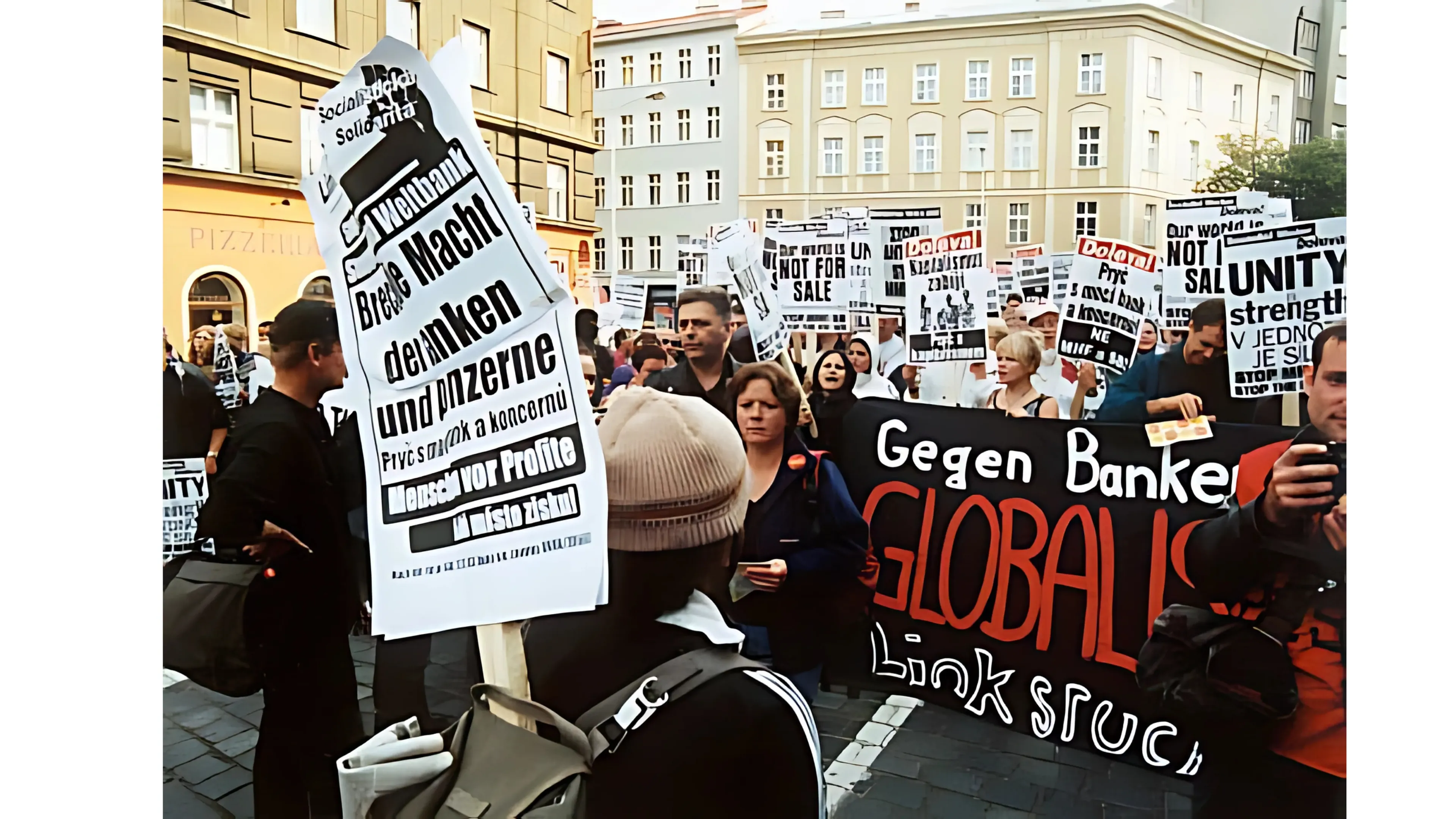 Nejprve ale napíšu, proč se protestovalo. Již v devadesátých letech se i v našich končinách začalo mluvit o globalizaci. Týkalo se to především vztahu nadnárodních koncernů a chudých zemí globálního Jihu, hodně se hovořilo o tématu dluhu. Problém zároveň souvisel s velkými nadnárodními institucemi jako Světová obchodní organizace (WTO), Mezinárodní měnový fond a Světová banka. V zahraničí vznikly organizace jako Reclaim the Streets a People´s Global Action, které začaly organizovat Global Street Party, akce mladých lidí okupujících ulice a tančících na nich ve světových metropolích v rytmu techna a elektronické hudby – party se pořádaly i v Praze. V roce 1999 pak nastal zlomový bod – v severoamerickém Seattlu protestovaly proti zasedání Světové obchodní organizace tisíce lidí v ulicích. Demonstrace se staly slavné především pro svou šíři – příznačné bylo propojení ekologů (Turtles) a odborářů (Teamsters). Tyto protesty symbolizují vznik světového alterglobalizačního hnutí. V roce 2000 pak vychází kniha Bez loga od Naomi Kleinové, kterou lze považovat za jakýsi manifest alterglobalizačního hnutí (publikace vychází v roce 2005 také v češtině).