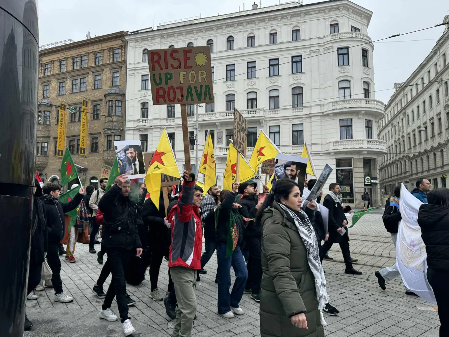 V neděli 1. února proběhla v Brně demonstrace na podporu Kurdů v Sýrii. Akce se zúčastnilo asi padesát lidí, nechyběly ani ženy a dokonce několik malých dětí. Nesli rožavské a kurdské vlajky, prapory YPJ a YPG (obranné kurdské sbory), transparenty („Svobodná Rožava“, „Rožava je hrází proti ISIS“ a podobně), plakátky s tématikou Rožavy a Kobání a další.