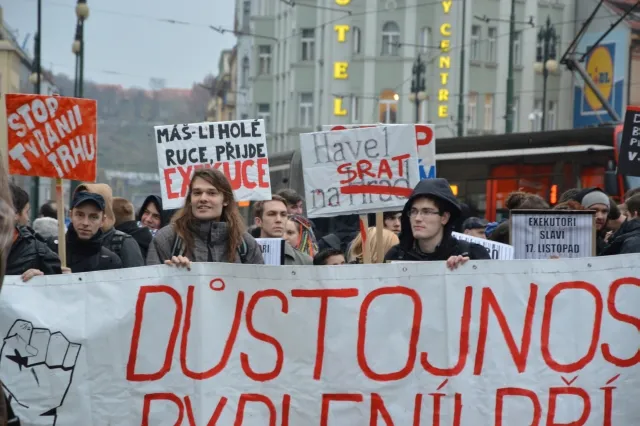Několik set antikapitalistů prošlo 17. listopadu 2014 Prahou